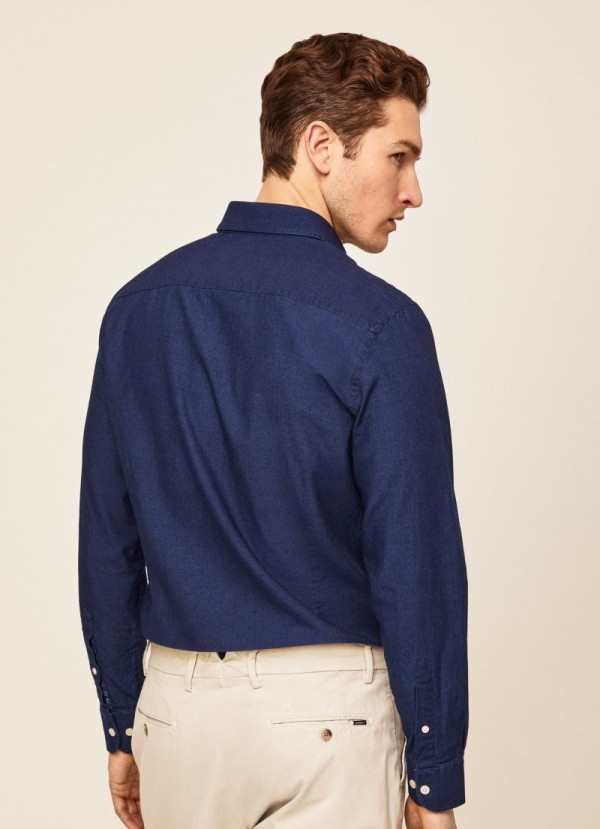 Ideal for informal occasions, this 100% cotton denim shirt combines perfectly with our jeans and sneakers. It features a slim fit accompanied by our characteristic kent collar and a dark wash that contrasts perfectly with the white buttons.