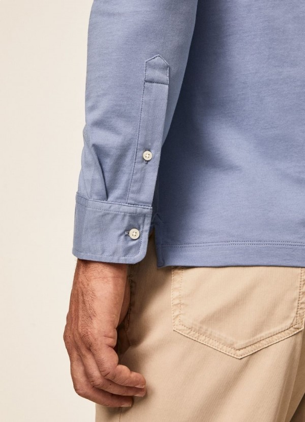 This long-sleeved polo shirt is the perfect balance between warmth and freshness due to its cotton knit fabric. Details such as the embroidered logo on the chest and the elegant stripes on the inner placket make this garment a great option for a casual look.