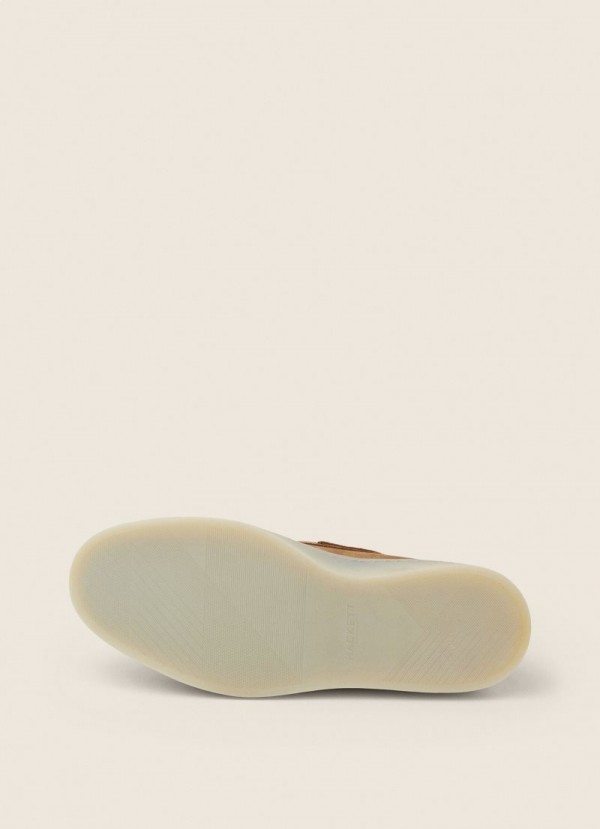 Pohodlné mokasíny vyrobené z hedvábného hovězího semiše s klasickým a minimalistickým designem. Představují tradiční konstrukci na nártu v kombinaci s krajkovými detaily na jazyku a bocích, stejně jako celokoženou vnitřní podšívku a inovativní poloprůhlednou podrážku.