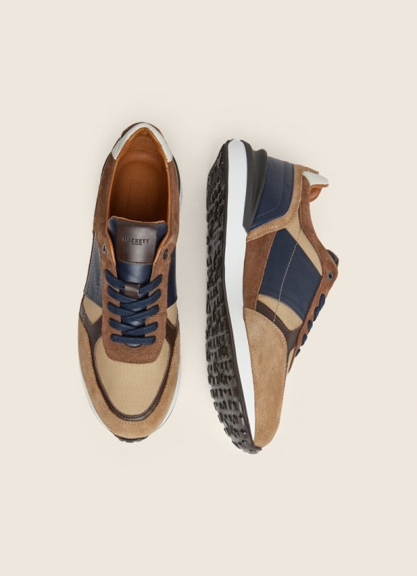 Tenis Hackett Semišové detailní kombinované tenisky pánské hnědé