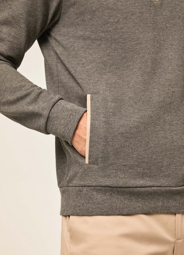 Pullover aus widerstandsfähigem Piqué-Stoff mit Reißverschlusskragen. Dieses Kleidungsstück vereint Eleganz und Funktionalität; der Reißverschluss in der Mitte der Brust hebt ein klassisches Hemd aus unserer neuesten Kollektion hervor und vervollständigt einen lässigen Look.
