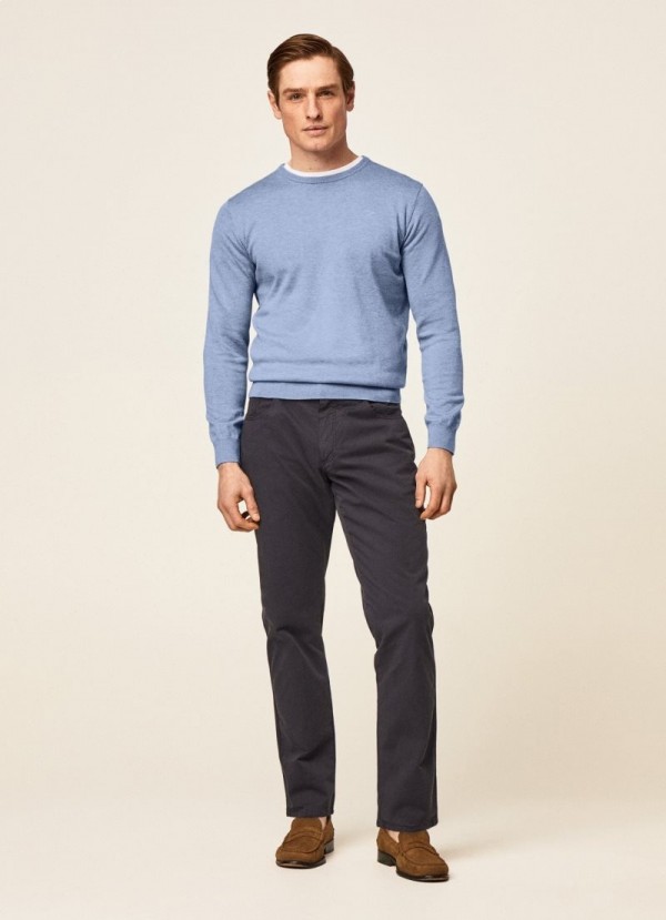 Jersey mit abgerundetem Kragen aus einer eleganten Mischung aus Baumwolle und Seide. Kombinieren Sie es mit einer unserer Chinos aus der Kollektion für einen lässigen Look, der zu allen Jahreszeiten passt.