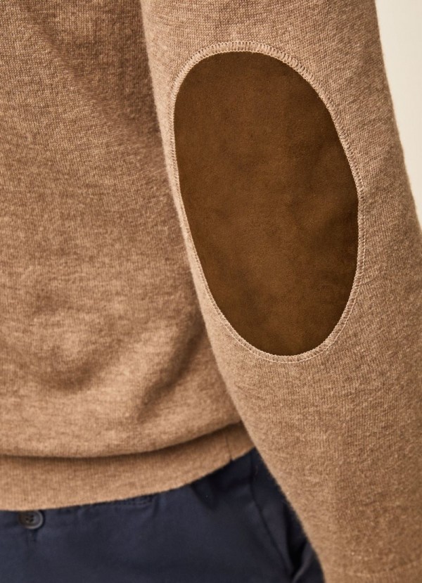 - Kontrastierende Ellenbogenflicken aus Wildlederimitat