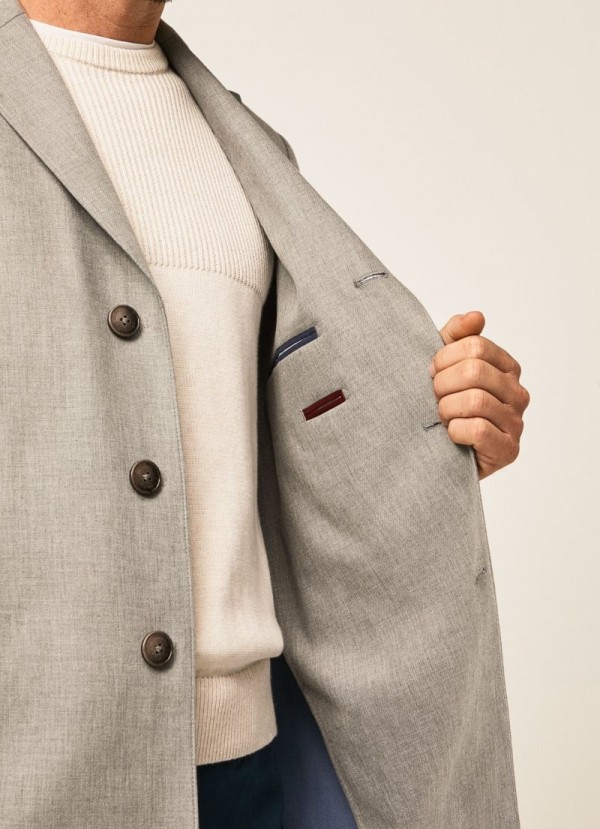 Denne løstskårne overfrakke fremstillet i et eksklusivt italiensk fremstillet stof skiller sig ud for sit elegante design i meleret bomuldsgarn. Den har revers med hak og tre-knaps lukning.