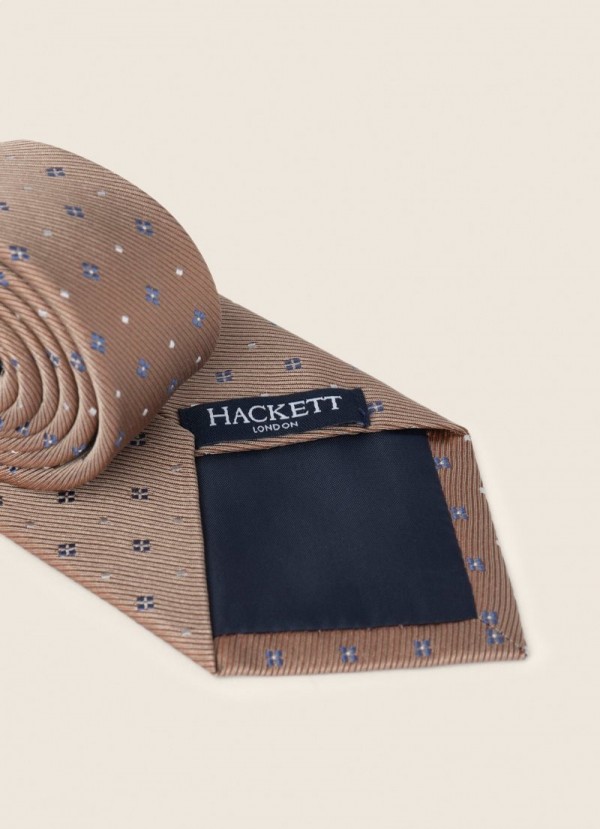 Dette tidløse silkeslips har et prikket og diamantmønster på en almindelig baggrund. Det er den moderne version af et traditionelt design, der gør det til det perfekte supplement til enhver af vores elegante jakkesæt.