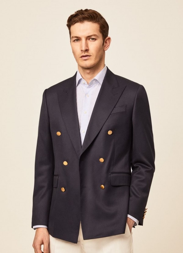 Elegancen af denne krydsede blazer med kontrasterende knapper er givet af dens klassiske stil og den fremragende kvalitet af materialerne, den er lavet i. Tilføj et lommetørklæde til brystlommen til mere formelle lejligheder.