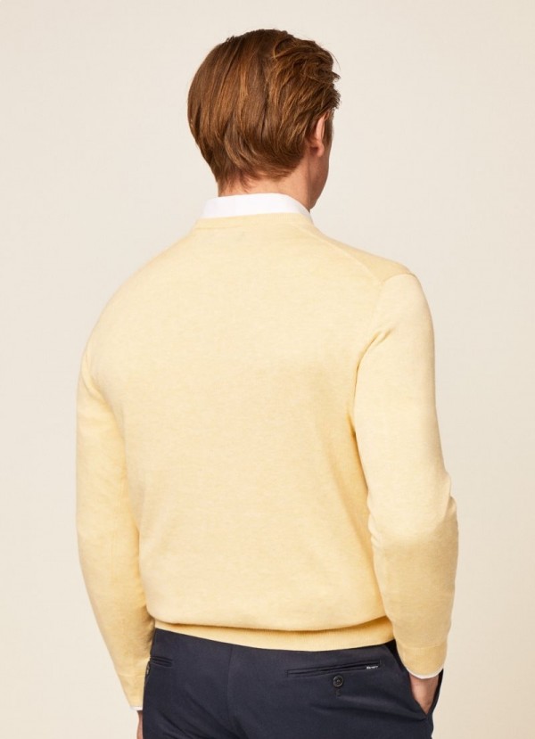 Hackett V-hals bomuldstrøje til mænds strik lysegul