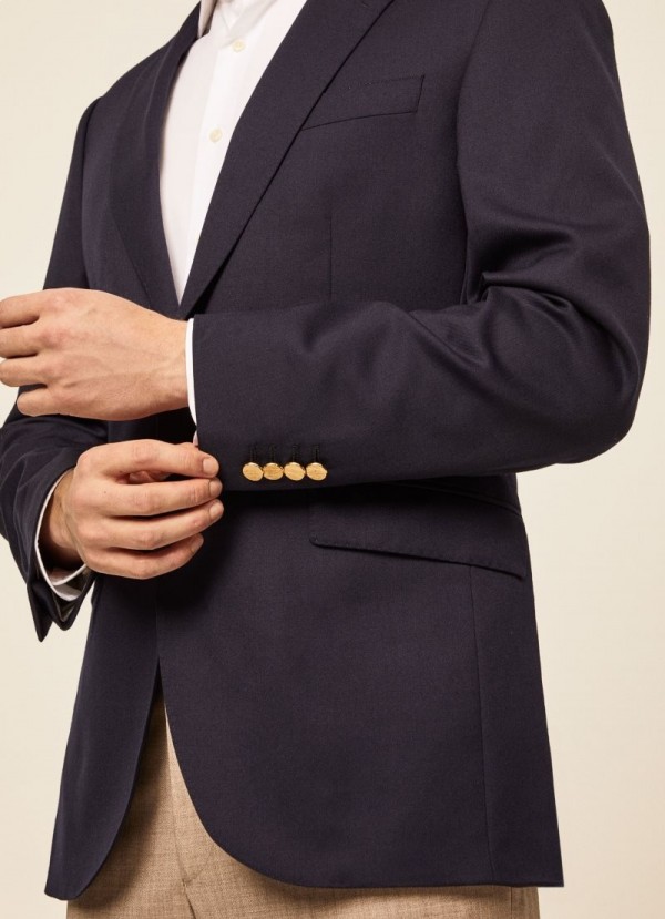 Este blazer confeccionado en lana te permite crear looks formales para los días de oficina. Para darle un toque de sofisticación casual, añade un pañuelo en el bolsillo del pecho y combínalo con uno de nuestros jeans y camisas estampadas.