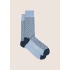 Estos calcetines están confeccionados en algodón mercerizado, lo que los hace muy resistentes y reduce el encogimiento. Tienen un brillo particular, muy similar a la seda, y un llamativo diseño geométrico de flores.