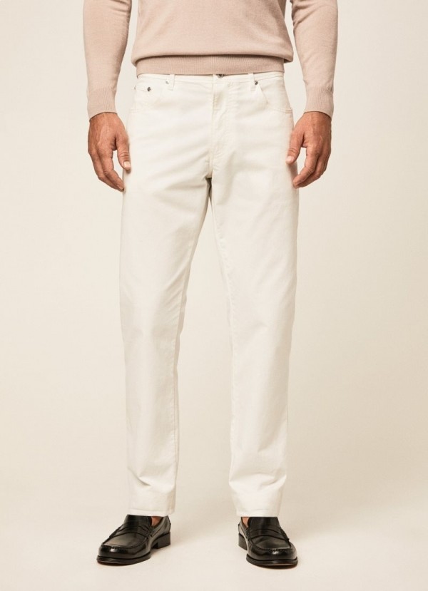 Pantalón clásico estilo 5 bolsillos confeccionado con tejido de sarga de la más alta calidad que lo convierte en una prenda vaporosa y muy elegante. Combínalo con uno de nuestros excepcionales polos de la nueva colección para un look casual.