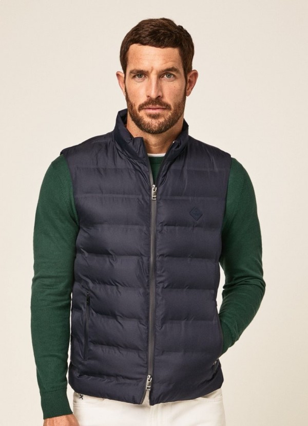 Chaleco acolchado de corte entallado Hackett para hombre en azul marino
