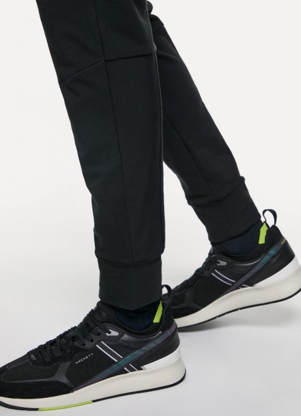 Hybridit lenkkeilyhousut froteekankaasta ja joustavasta polyesterista. Sen kontrastisävyiset paneelit antavat sille hienostuneen ilmeen, joka sopii erinomaisesti yhdistettäväksi muiden HSPORT-sarjan vaatteiden kanssa.