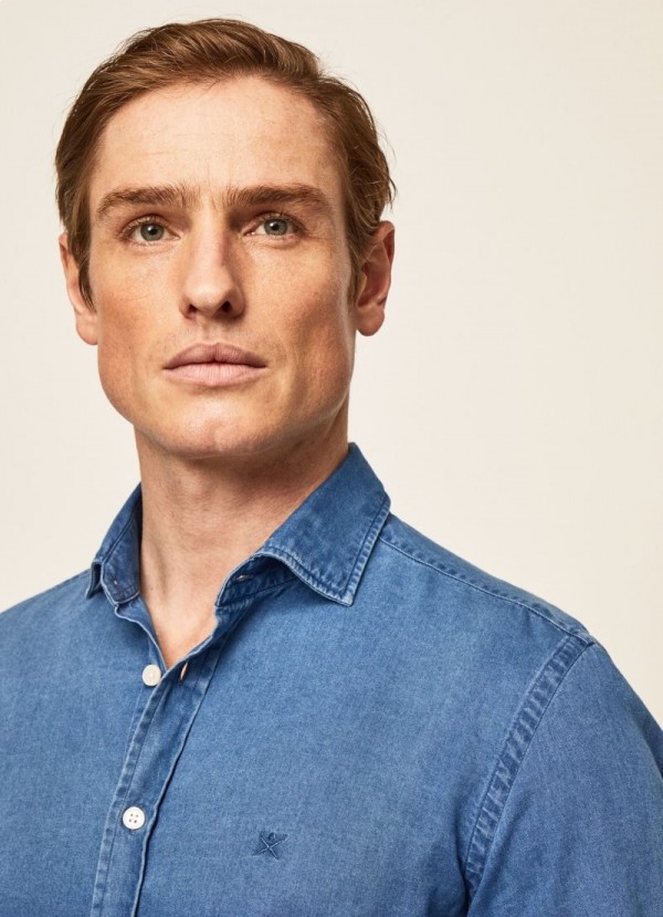 Ihanteellinen epävirallisiin tilaisuuksiin, tämä 100 % puuvillasta valmistettu farkkupaita sopii täydellisesti farkkuihimme ja tennareihimme. Siinä on ohut istuvuus ja tunnusomainen kent-kaulus, jossa on keskisininen pesu, joka on täydellinen kontrasti valkoisten nappien kanssa.
