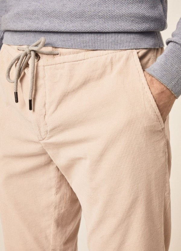 - Slim fit - Säädettävä kiristysnyörillinen vyötärölinja - Edessä taskut - Takatasku napilla - Koostumus: 100 % puuvillaa