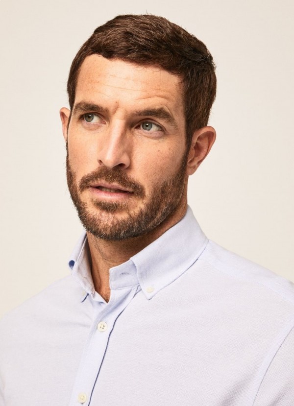 Tämä pikee-kankaasta valmistettu paita, jossa on nappikaulus, on monipuolista; sitä voidaan käyttää täydellisesti yhdessä ajattomista kolmiosaisista puvuistamme tai klassisista chino-puvuistamme ja mokkanahkahoafereistamme uusimmasta mallistostamme.