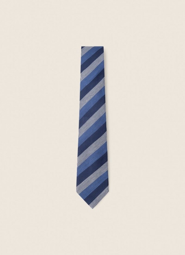 Tämä raidallinen solmio on valmistettu hienokuvioisesta silkistä, jossa on hienovarainen, valoa heijastava kiilto. Sen suuri monipuolisuus mahdollistaa sen käytön missä tahansa tapahtumassa tai kokouksessa.