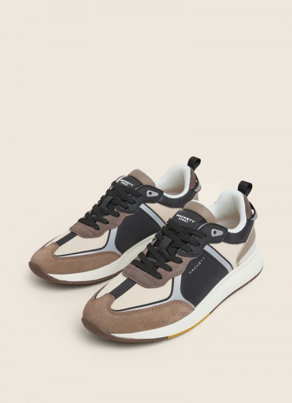 Näissä ilmavissa tennareissa on hienostunut yhdistelmä kuvioitua kangasta ja pehmeää mokkanahkaa. Näissä tennareissa on heijastavia yksityiskohtia yläosassa, koristeteippi kantapäässä ja kuumasaumattu viimeistely, jotka takaavat paremman kestävyyden.