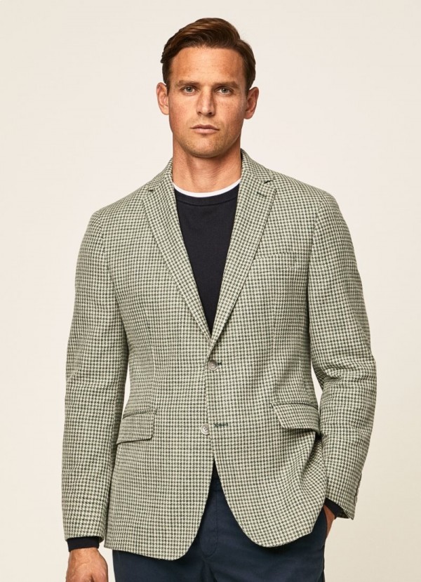 Blazer ajusté confectionné en coton italien fin. Son motif pied-de-poule lui confère une allure élégante et le rend très polyvalent. Associez-le à l'un de nos chinos et à un jersey léger pour un look chaleureux et moderne.