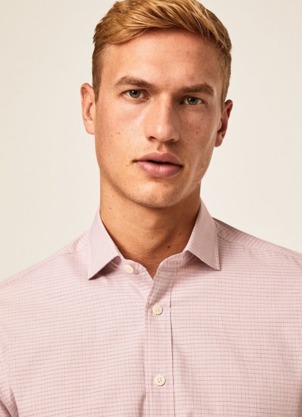 Avec ses tons doux et raffinés, cette chemise classique à carreaux est un incontournable de votre garde-robe. Sa coupe ajustée et son col découpé particulier en font un vêtement idéal à associer à l'un de nos chinos classiques.