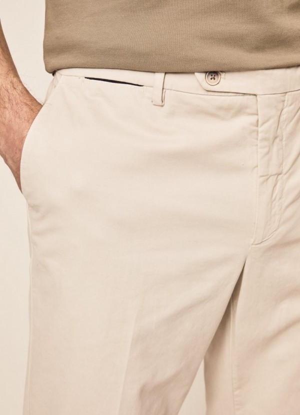 Ce pantalon chino slim est confectionné en sergé de qualité supérieure. Un vêtement indispensable pour votre garde-robe pour sa polyvalence et son confort.