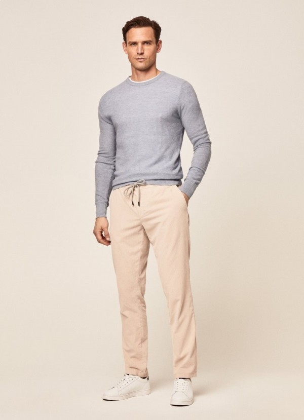 Ce pantalon chino confortable de style jogger est un incontournable de votre garde-robe pour sa polyvalence. Il est doté d'un cordon de serrage pratique à la taille et d'un élégant logo sur la poche arrière gauche.