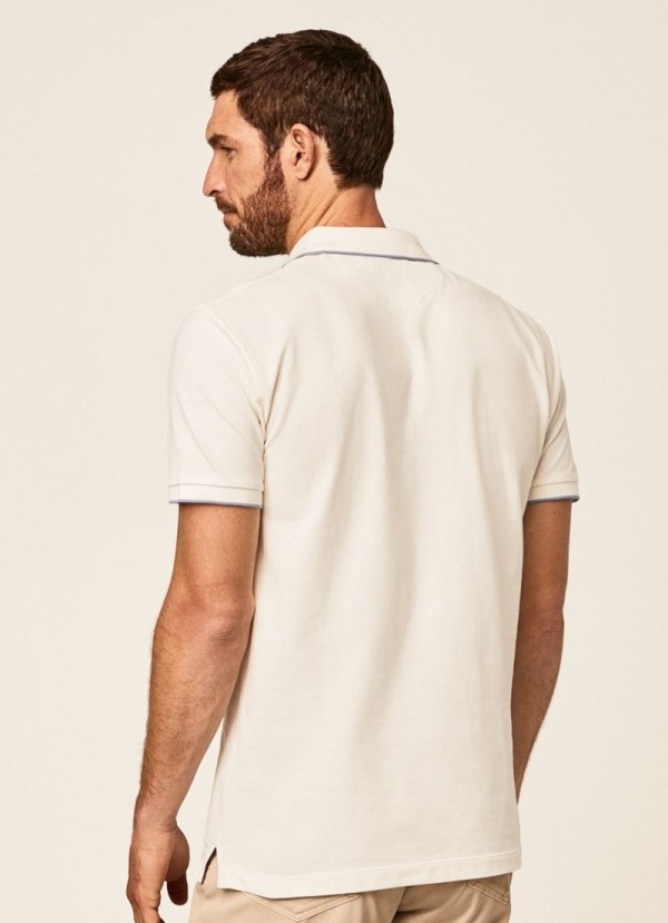 Ce polo moderne à manches courtes en coton se distingue par sa bordure élégante au niveau du col et par d'autres détails synonymes de sophistication, comme le motif imprimé sur la bande intérieure du col. Sa structure frappante est idéale à combiner avec certains modèles classiques de notre ligne de jeans.