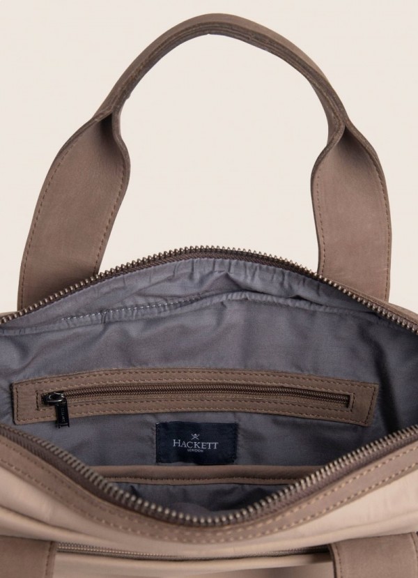 Ce sac pour ordinateur portable de taille moyenne est fabriqué en nylon hydrofuge avec des détails élégants en nubuck. Il est doté de plusieurs poches extérieures et intérieures pour un rangement facile.