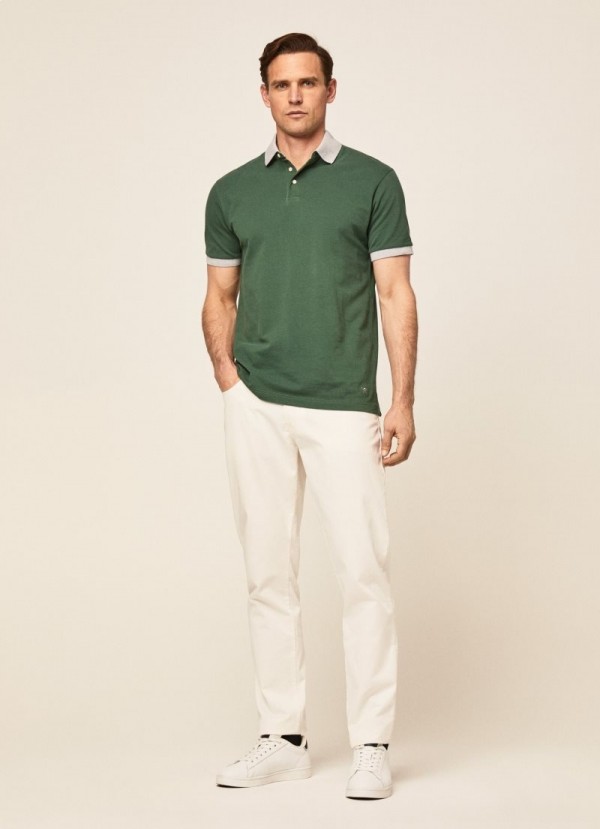 Polo confectionné en piqué de coton. Ses détails colorés sur les manches et l'encolure lui confèrent un look moderne. Il est idéal à combiner avec l'un de nos modèles de chinos et de chaussures pour un look confortable et estival.