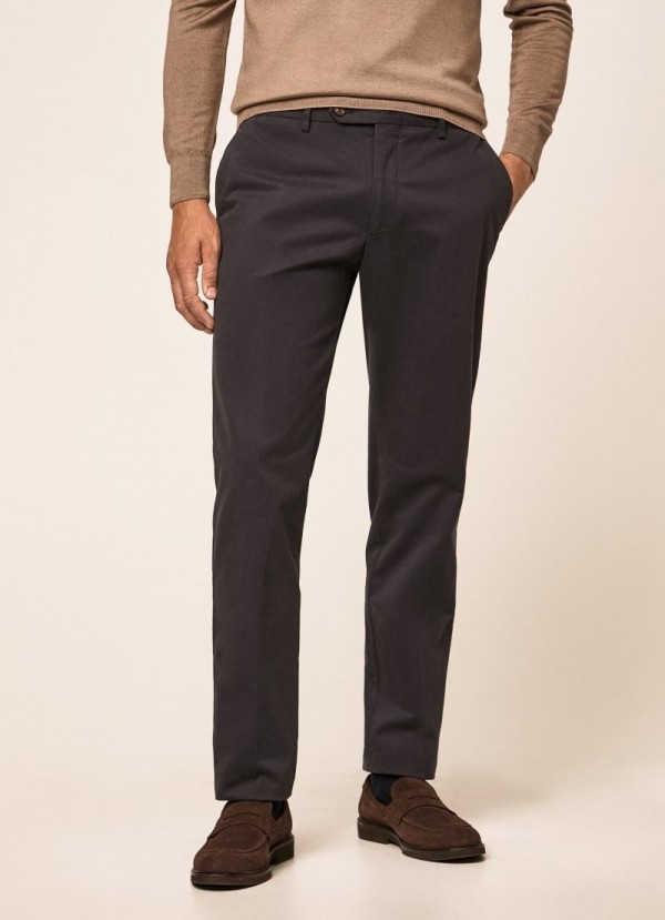 Pantalon chino coupe Sanderson à jambe droite, confectionné en coton extensible. Ce pantalon est une alternative idéale au chino classique, et se marie parfaitement avec une veste et des baskets.