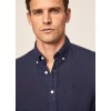 Ανδρικά πουκάμισα από λινό Hackett Slim Fit Navy Blue