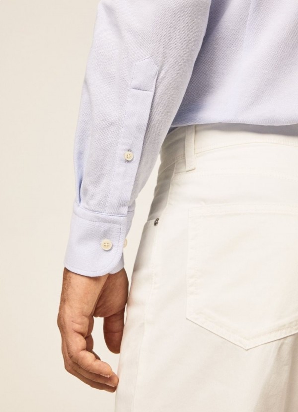 Αυτό το πουκάμισο από ύφασμα πικέ και με γιακά με κουμπιά χαρακτηρίζεται από την ευελιξία του. Μπορεί να φορεθεί τέλεια με μια από τις διαχρονικές μας φόρμες τριών τεμαχίων ή με τα κλασικά μας chinos και σουέντ loafers από την τελευταία μας συλλογή.