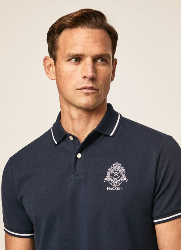 Hackett Classic Fit Heritage Short Sleeve Polo Shirt Men Navy Blue