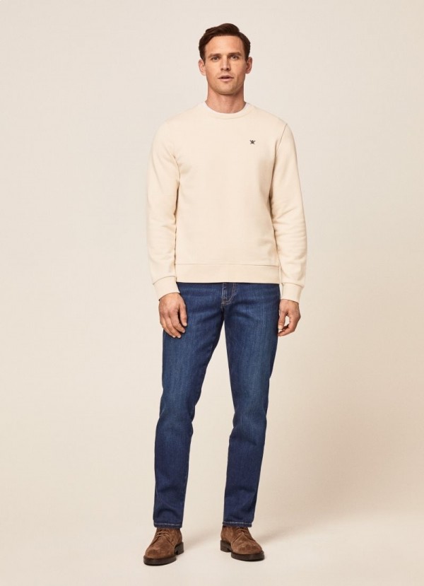 This basic sweatshirt manufactured of fleece, features the brand's traditional embroidered logo on the chest. Its versatility allows it to be combined with different looks and to be used throughout the year.