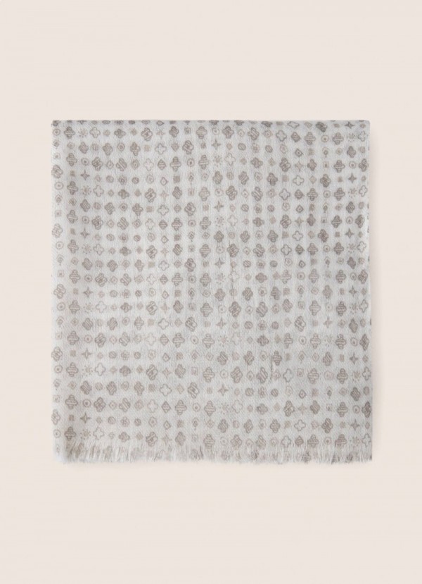 This scarf crafted in modal with an all-over print is perfect for creating and complementing casual and stylish looks. It features a patterned design with frayed edges that give it an extra touch of dynamism.