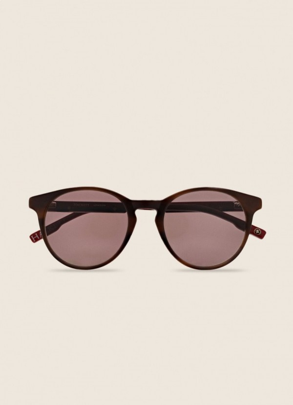 These classic round sunglasses feature decorative enamel color stripes inspired by horse racing and polo.