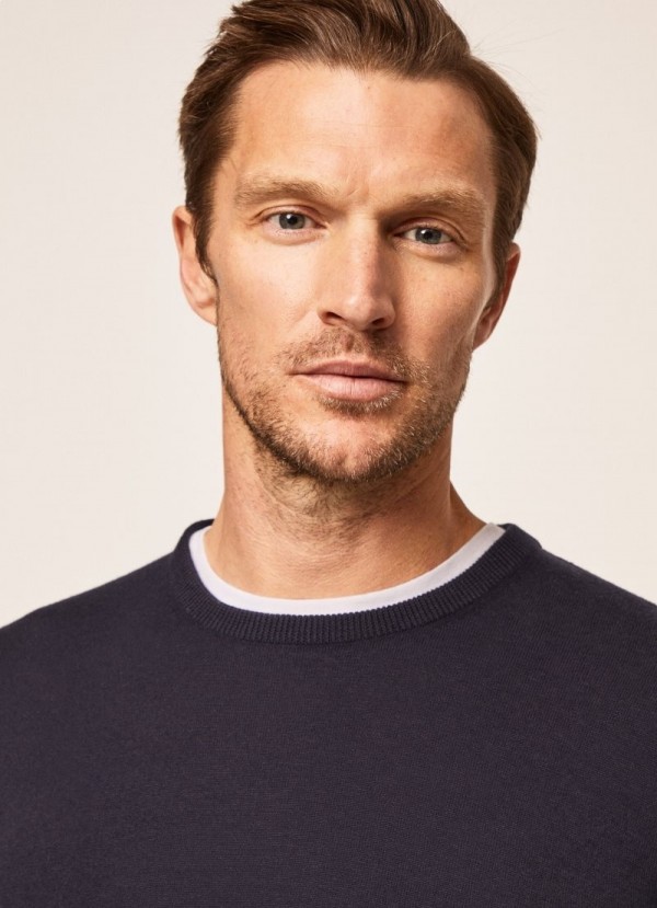 Rounded collar jersey manufactured in an elegant blend of cotton and cashmere. Wear it over our shirts, t-shirts or polo shirts and pair it with any of our chinos for a casual look.