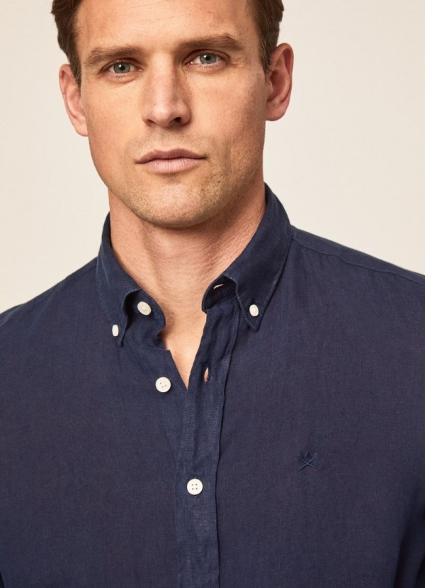 Hackett Slim Fit Linen Men's Shirts Navy Blue