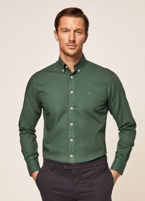 This premium cotton shirt is manufactured in the traditional Oxford fabric and treated with the garment dye technique that highlights its colors. Its slim fit and button-down collar are ideal to combine with one of our classic chinos.