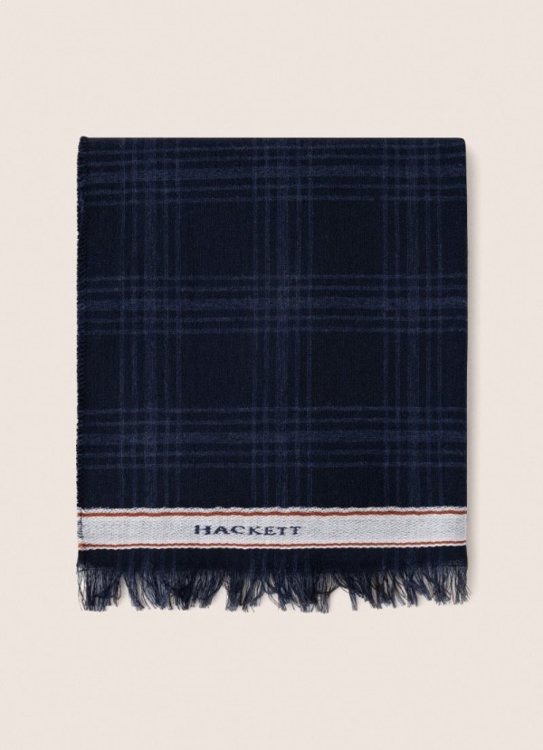 Ovaj pamučni šal ima klasični karirani uzorak koji ga čini vrlo lakim za kombiniranje. Prikazuje ležeran stil s iskrzanim krajevima i prugom u kontrastnoj boji s natpisom našeg brenda.
