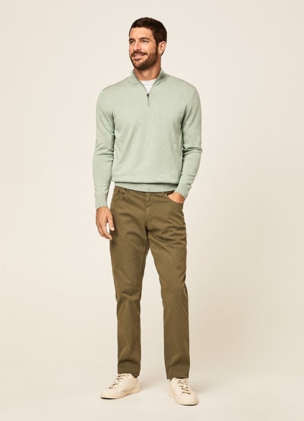 Žersej s ovratnikom na pola patentnog zatvarača izrađen od pamuka i svile. Ovaj je odjevni predmet idealan za vikend izlaske usred sezone. Kombinirajte ga s jednim od naših hlača s 5 džepova.