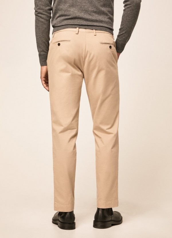 Chino hlače Sanderson kroja s ravnim nogavicama, proizvedene od rastezljivog pamuka. Ove hlače idealna su alternativa klasičnim chinos hlačama, a savršeno se slažu uz sako i tenisice.
