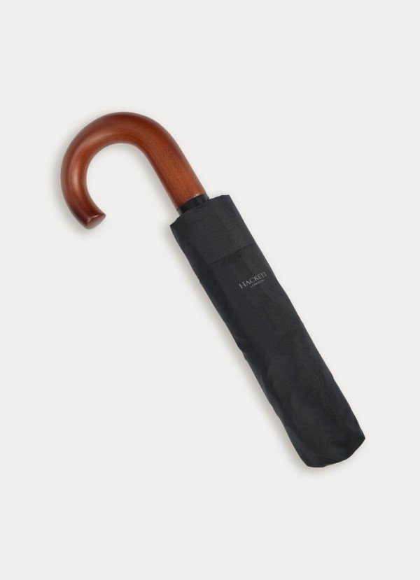 Ovaj sklopivi kišobran kombinira klasične detalje, poput zakrivljene drvene ručke, i praktičnost automatskog otvaranja i zatvaranja. Izrađen od izdržljive, vodootporne pongee tkanine, ima ispis našeg legendarnog logotipa na prednjoj ploči i odgovarajući rukav s otisnutim logotipom.