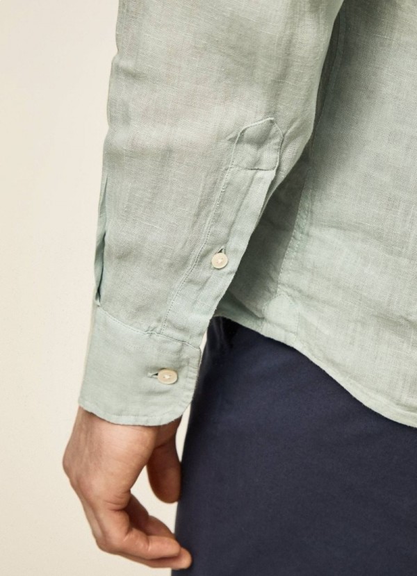 Ova uska košulja izrađena od 100% lana tehnikom bojanja odjeće dostupna je u širokoj paleti ljetnih boja. Ima tradicionalni Kent ovratnik i naš tonski izvezeni logo na prsima. Uparite ga s jednim od naših sezonskih chino klasika.