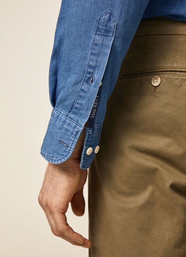 Ideális kötetlen alkalmakra, ez a 100% pamut farmer ing tökéletesen kombinálható farmereinkkel és tornacipőinkkel. Vékony szabású és jellegzetes kentgallérunk, középkék mosással, amely tökéletesen kontraszt a fehér gombokkal.
