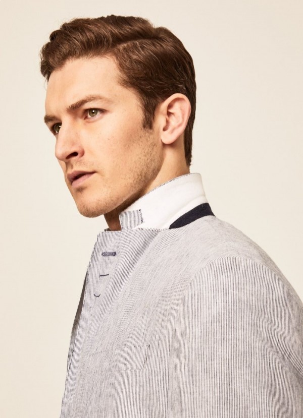 Mar gheall ar an gcló stríocach agus na seams AMF tá an bléasair seo riachtanach don séasúr. Soláthraíonn an meascán línéadaigh agus cadáis úire agus compord, rud a fhágann go bhfuil sé oiriúnach do chásanna ócáideacha nó leathfhoirmiúla.