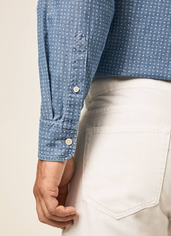 Camicia in twill stampato con un raffinato design geometrico e il nostro colletto Richmond. Abbinala a uno dei nostri classici chino e cinture in pelle di mucca.