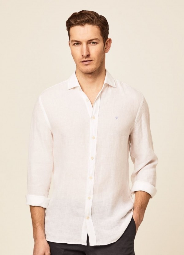 Camicie da uomo in lino Hackett Slim Fit bianche