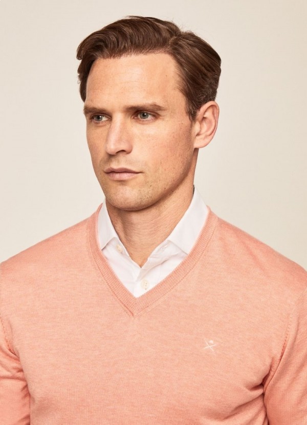 Maglia con scollo a V realizzata in cotone e seta. Questa maglia leggera è un capo ideale per un look da weekend tutto l'anno, grazie alla sua traspirabilità. Abbinala a uno dei nostri pantaloni a 5 tasche.