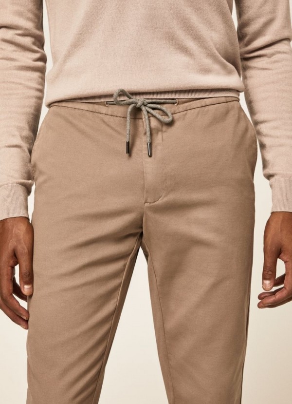 Pantaloni chino stile jogger realizzati in un tessuto tricotine spazzolato ed elastan che lo rendono un capo molto comodo senza perdere raffinatezza. Abbinalo a uno dei nostri maglioni classici per un look casual.