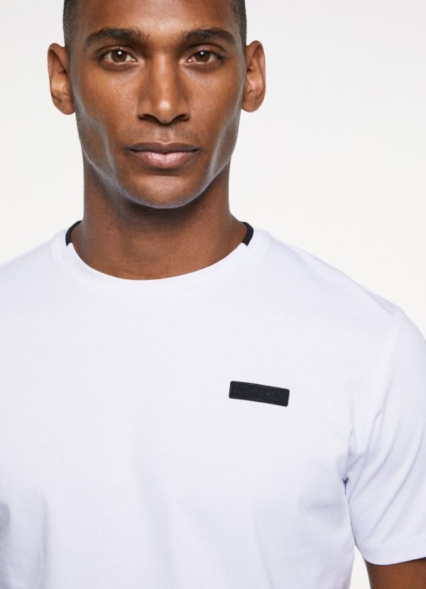 Questa t-shirt realizzata in jersey di cotone con colletto e logo in gomma sul petto in colore a contrasto è un capo basico essenziale per ogni stagione.